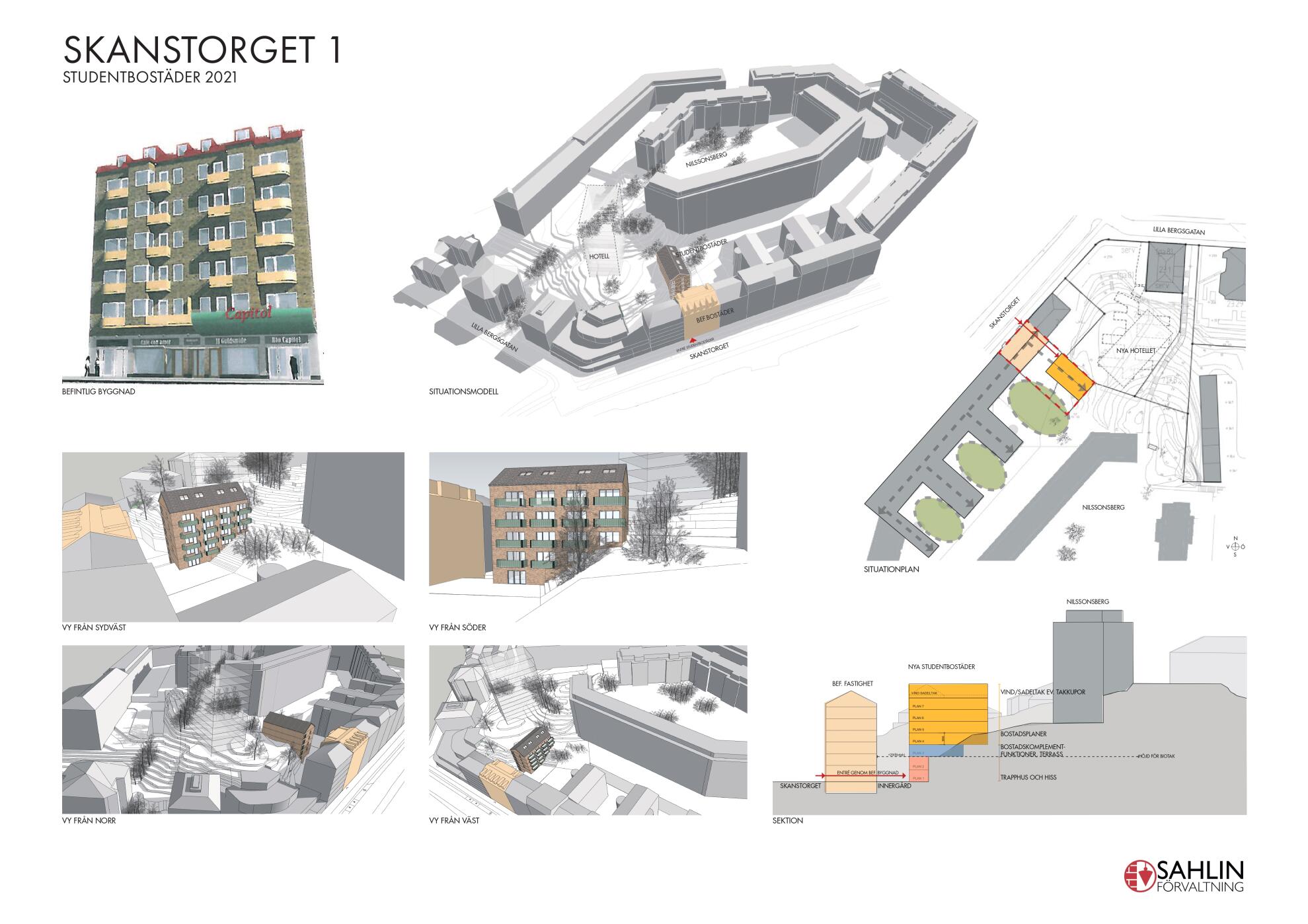 Projekt Skanstorget 1B syftar till att utveckla obebyggd gårdsmark i centrala Göteborg genom att tillskapa mellan 15 och 20st nya studentbostäder.